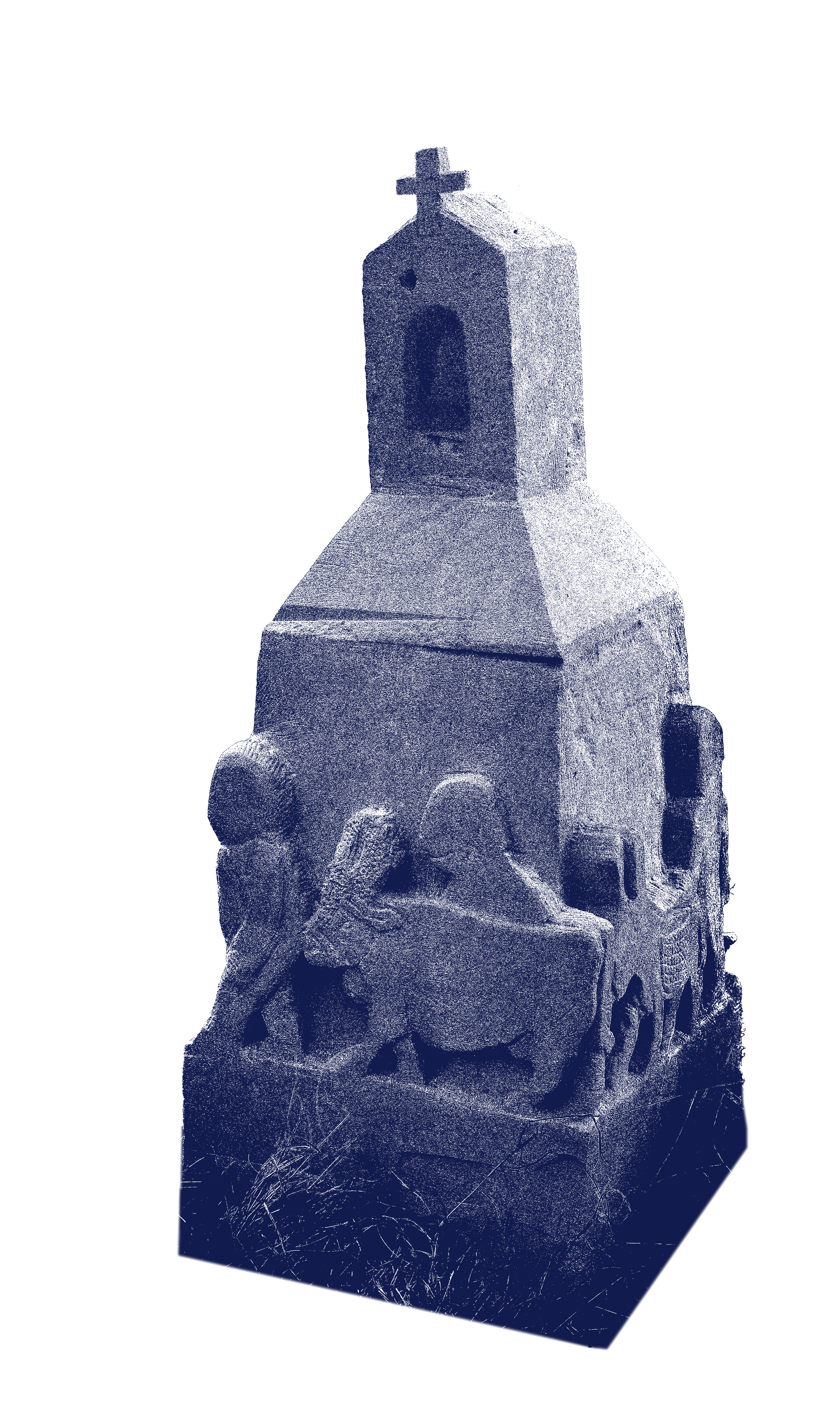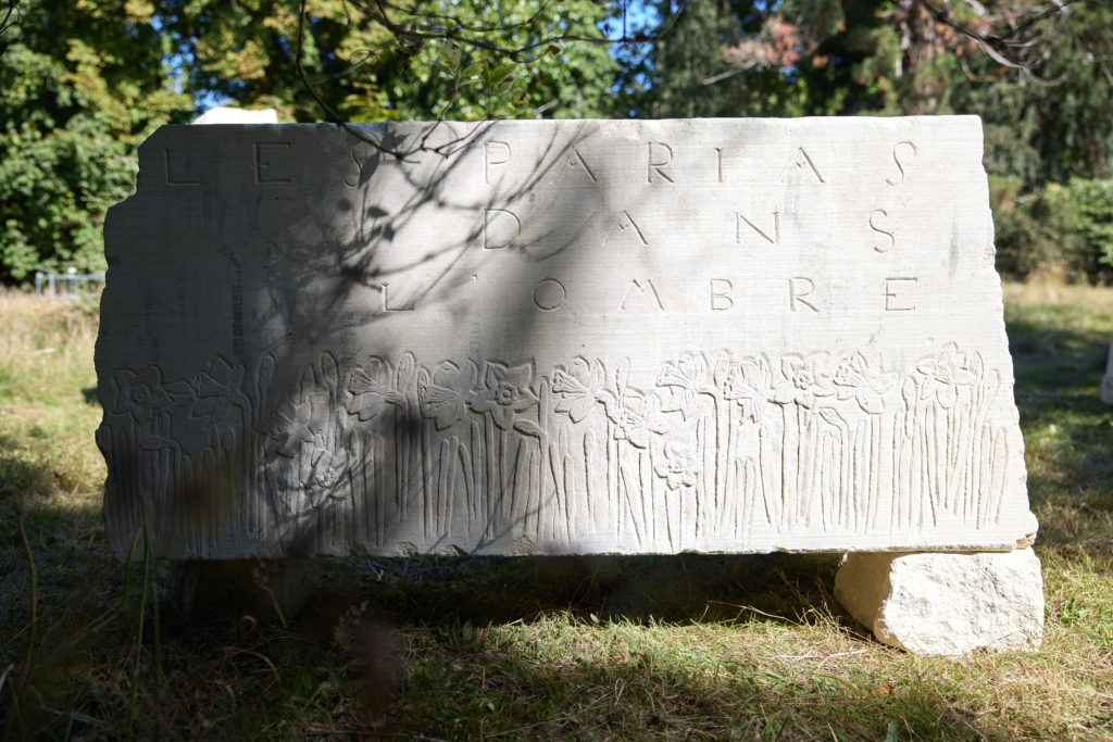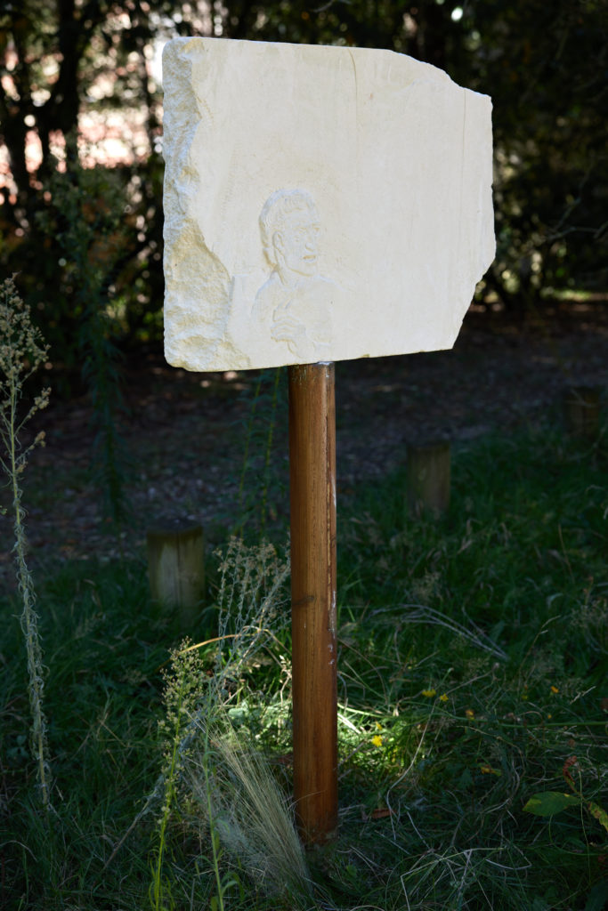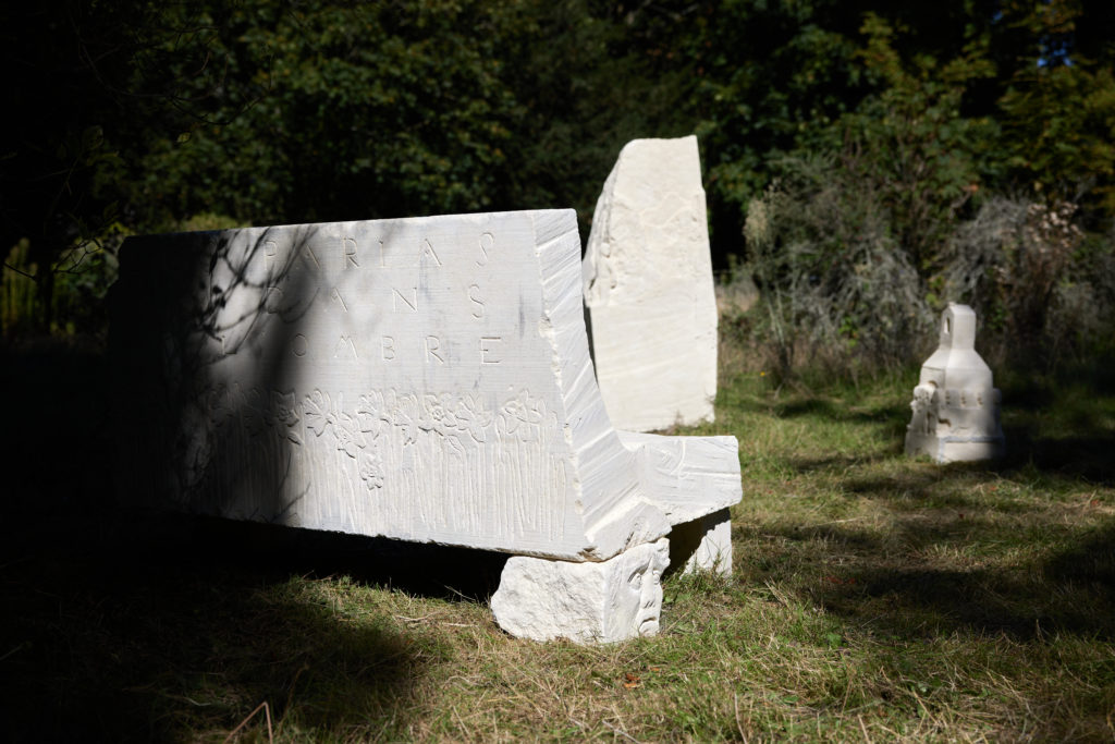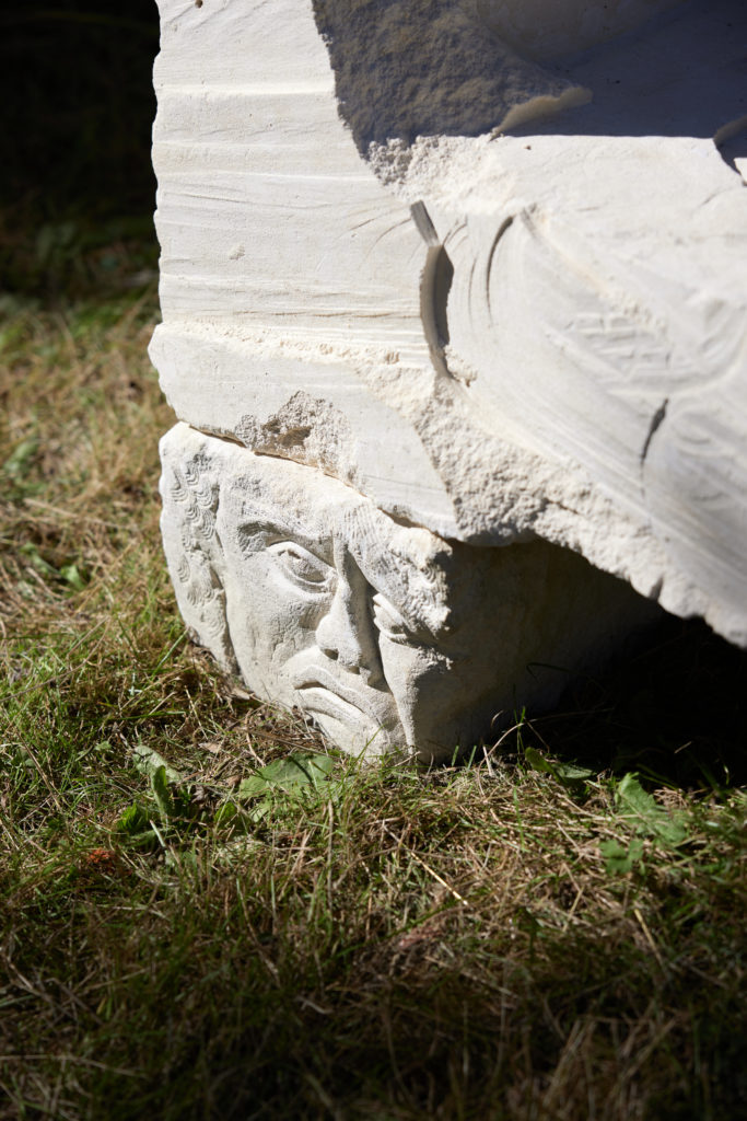 Sorte de storyboard qui tient en une dizaine d’images, agencées en six volumes de pierre provenant chacun d’un seul et même bloc calcaire, les projections mentales du livre et futur film se déploient par scène sur plusieurs bas-reliefs.